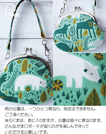 がま口ポーチ【白くまの森 グリーン】持ち手付きポーチ小物入れ白くま【ラッキーシール対応】